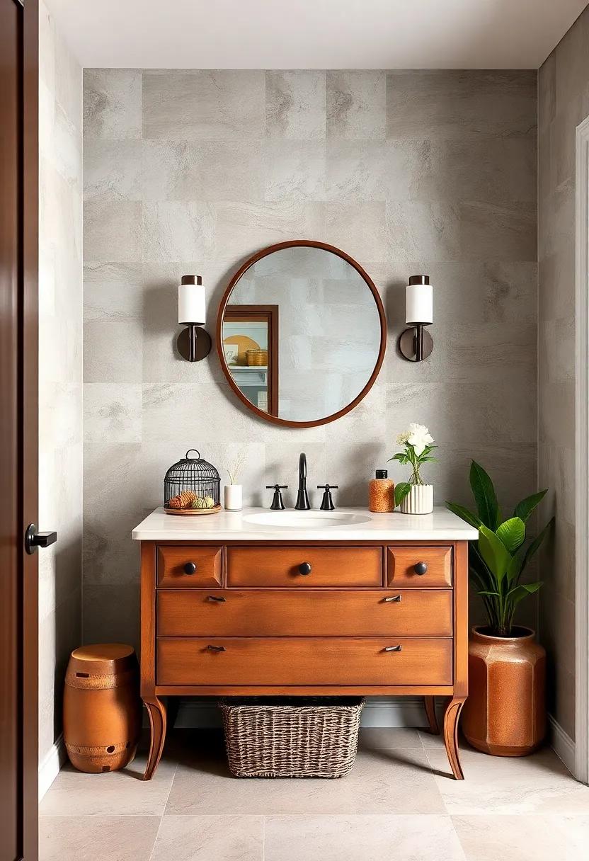 Vintage Charm: Incorporate a repurposed dresser as your powder room vanity, adding character and unique storage options that tell a story