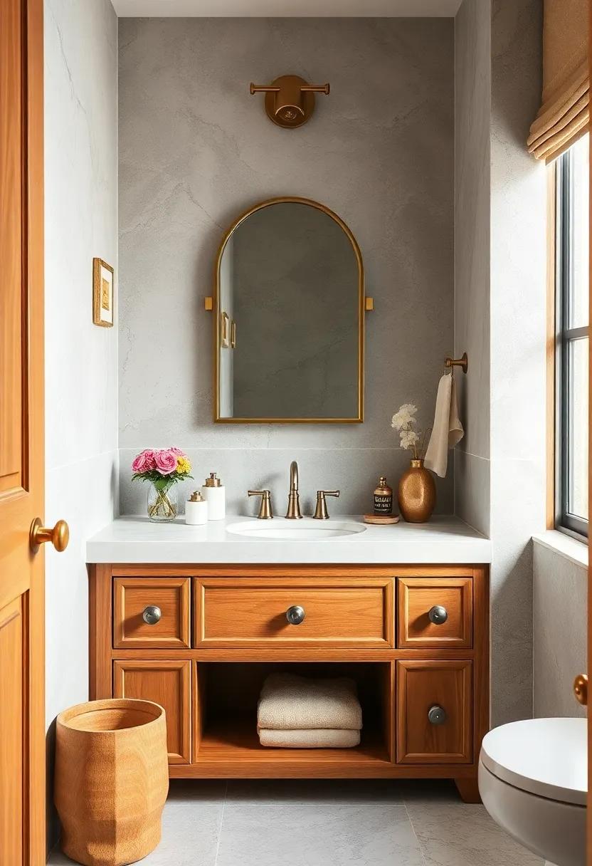 Gold Accents: Hardware and fixtures in brushed gold or matte black add a glamorous touch to even the humblest of vanities